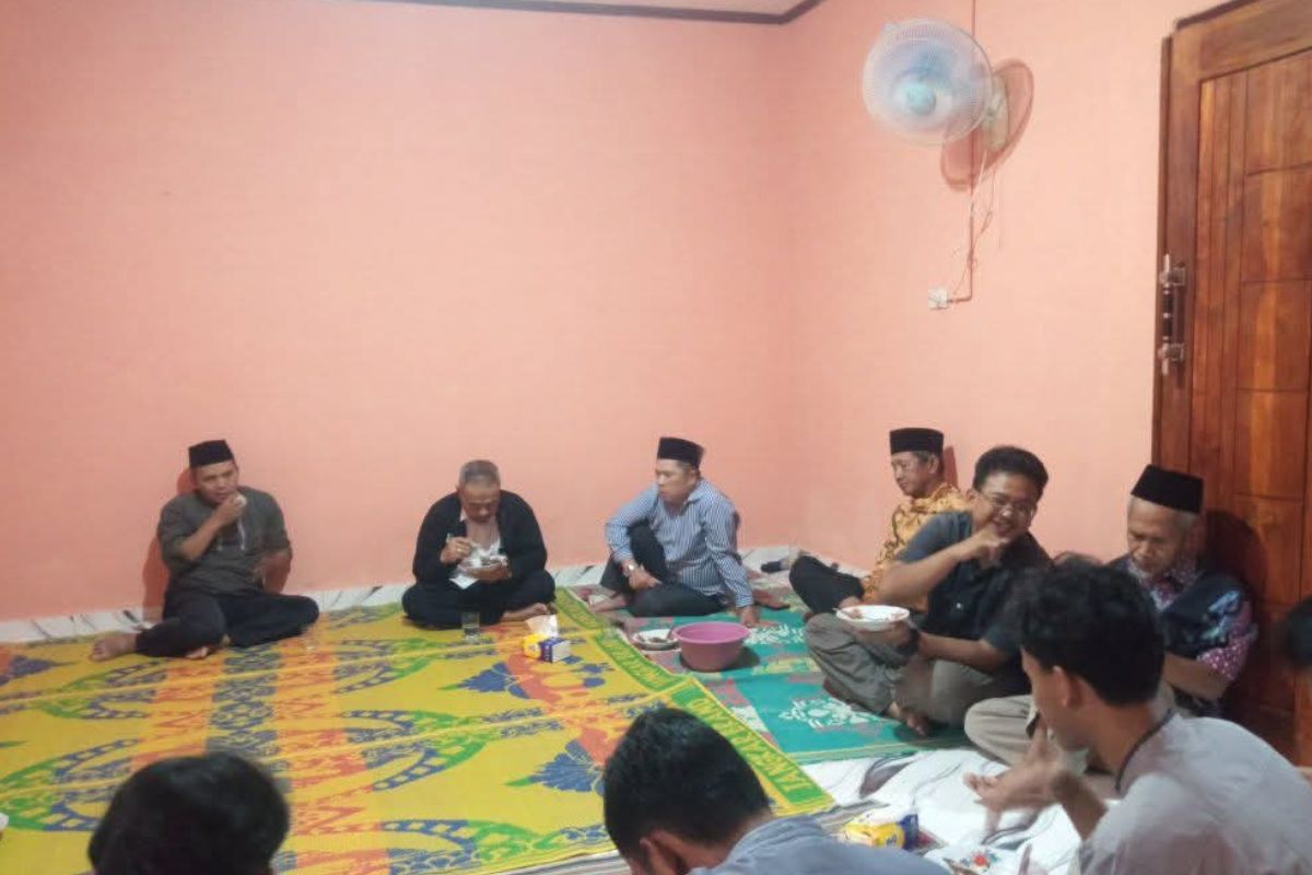Usai sholat, para tamu dan tuan rumah berkumpul di rumah dinas mubaligh dari Jemaat Ahmadiyah Pagelaran untuk santap malam bersama.